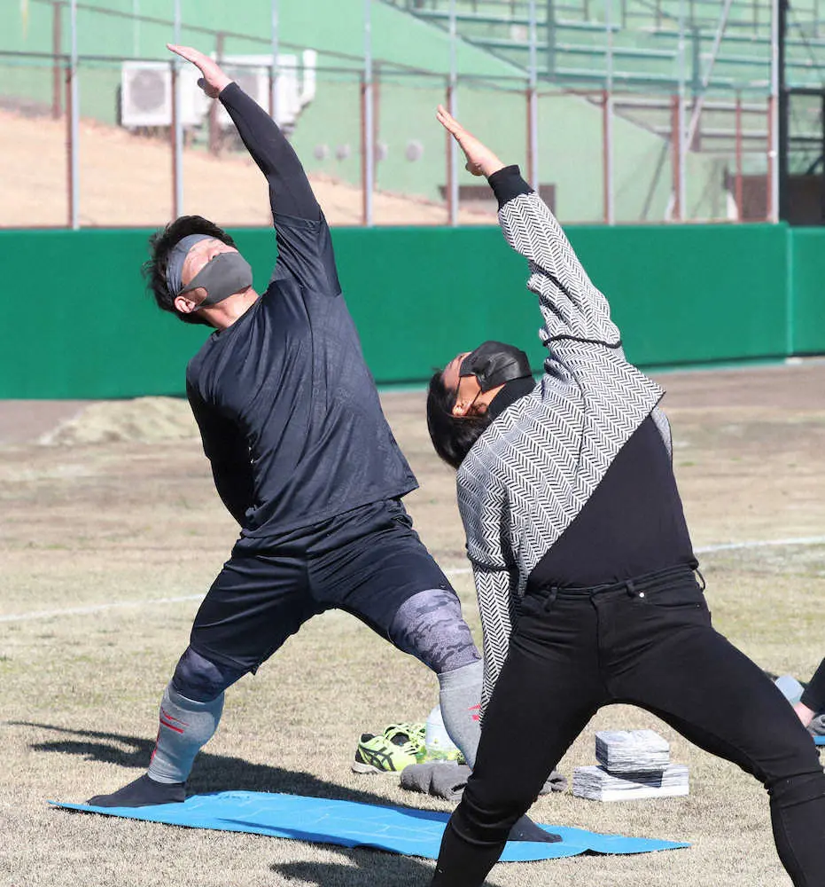 昨年は左肩痛の影響もあって悔しいシーズンを送った。苦い経験から今オフは故障防止を目的に柔軟性のメニューを追加。午前9時に開始した練習は体幹のトレーニングにも時間を費やした。自主トレではビーチバレー選手でヨガインストラクターの樫原美陽さんに志願の弟子入り。“特別講師”の現役アスリートからヨガトレーニングの指導を受けた。