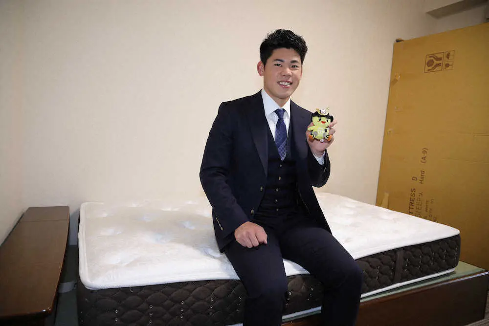 即戦力左腕としての期待が大きいルーキーは、地元の鹿児島県日置市のイメージキャラクター「ひお吉くん」のぬいぐるみを持ち込んで入寮。「(日置市の)市長さんからもらって。これを持って頑張ってこいということでもらいました」と笑みを浮かべた。「自然がすごく豊かで、人が温かくてすごく過ごしやすい場所」と語る日置市の魅力も広めるべく、鈴木のプロでの挑戦が幕を開ける。