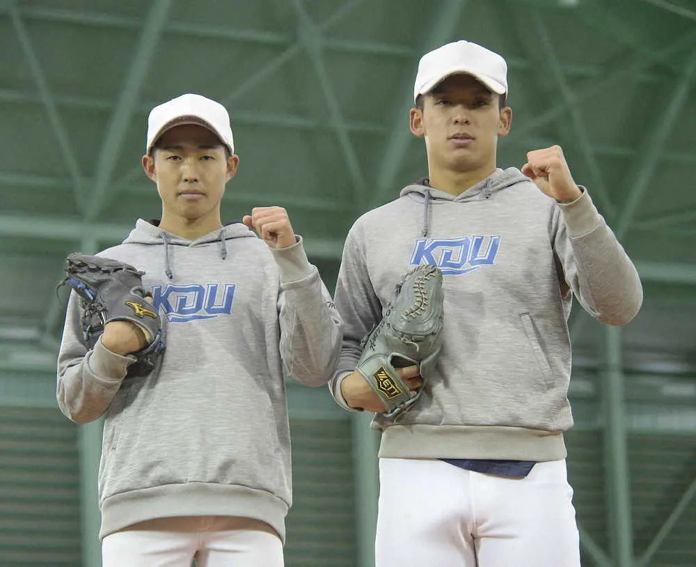 最速150キロの大石はリーグ戦通算8勝で「ドラフト1位で行けたら。(阪神の)佐藤(輝明)さんと対戦してみたい」と大学の先輩との“再会”を熱望。最速151キロで同5勝の久保も「防御率0.00を達成して上位指名」と目標設定し、「お互いリーグ戦の1戦目に投げたいと思うので、そこは競争」と対抗心を燃やした。関西学生野球最多47度の優勝を誇る名門の二枚看板に注目だ。