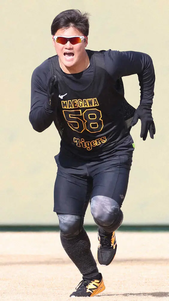 気合の入った表情でダッシュする阪神・前川(撮影・平嶋 理子)