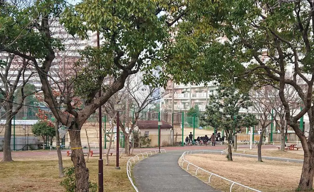 団地の中にある野球場。少年野球チームが練習を行っていた