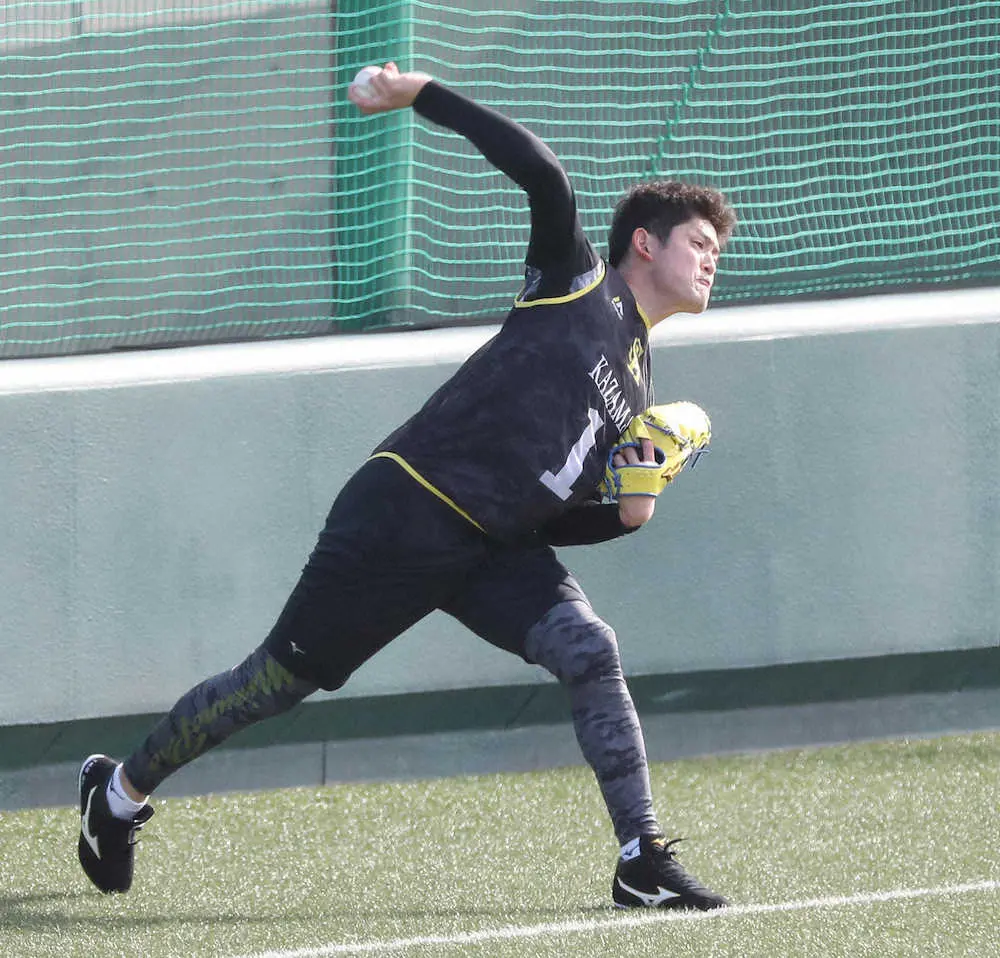 キャッチボールをする風間(撮影・岡田 丈靖)