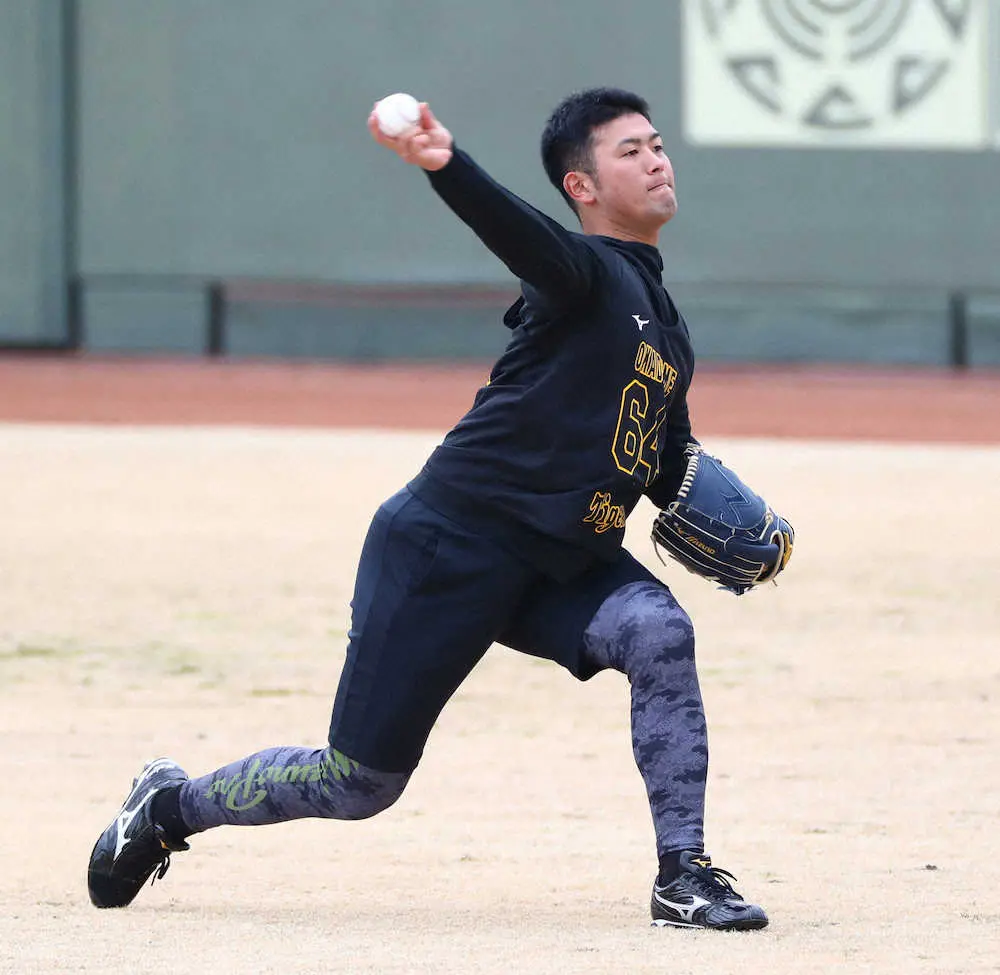 「やっと阪神の練習ができているなという感じです。思ったより動けていたので良かった」。別メニュー調整ながら約30メートルの距離でキャッチボールも行った。「(バランスなど)少し合わないところもあったけど、それも少しずつ合わせていく」と試運転を強調も、ようやく同期の面々と同じグラウンドで汗を流し、安堵(あんど)の表情を浮かべた。