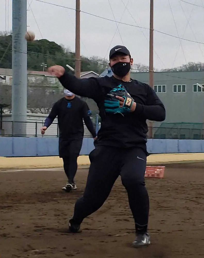 <巨人・岡本和 自主トレ公開>守備練習する岡本和(球団提供)