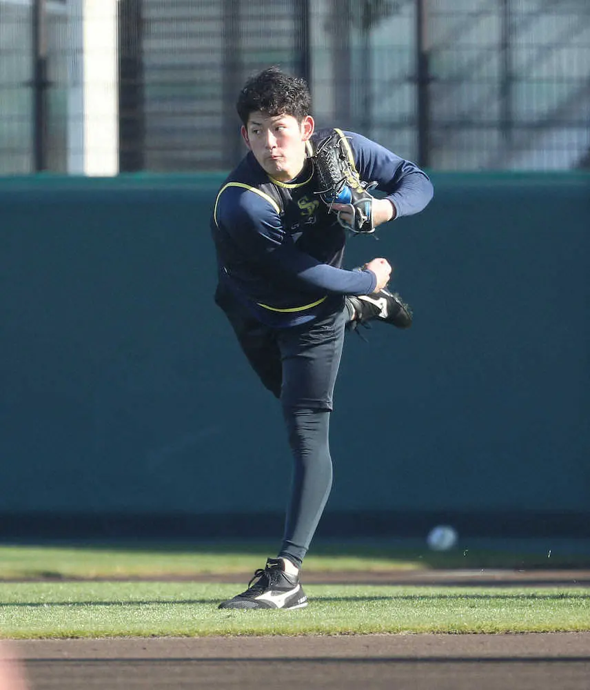 全体練習後には千賀のブルペン投球も見学した。「体が締まっていて筋肉の質がいい。僕みたいな脂肪じゃない。サラブレッドみたい。僕はまだまだ子猫ちゃんぐらい」。エースが放つオーラと球を初めて見て、興奮しっぱなしだった。さらに食堂で初めてあいさつを交わした。