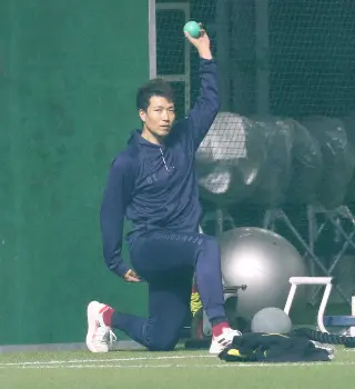 体幹トレーニングの最中、風間はチラ見を繰り返していた。視線の先には田中とノーステップでキャッチボールする千賀の姿があった。休憩中には凝視して動きを観察した。