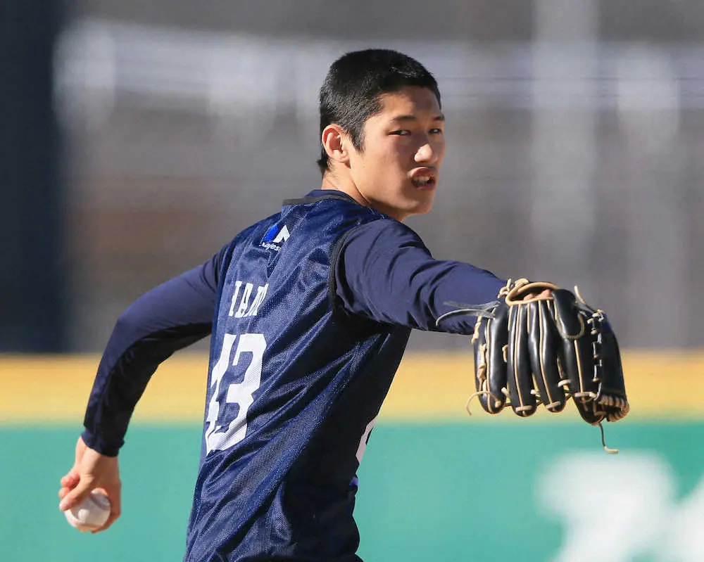 幼い頃から「フォルムが格好いいなー」と憧れたのは涌井、岸(ともに現楽天)ら長身投手だった。3年夏は左肘の故障で棒に振ったが、すでに完治し球速増を実感する。「友人と観戦に訪れていた場所で野球ができる。まずは1軍で投げるのが目標」。レプリカユニホームでは空白だった背番号を「43」とし、B班(2軍)キャンプからスタートする。 (神田 佑)