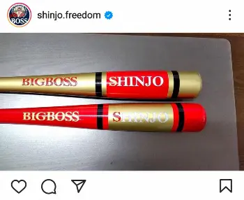 バットは富山県にあるメーカー「河合バット製作所」製で、金を基調にバットの芯の部分を赤にしたものと、赤を基調に芯の部分を金にしたバージョンの2つのバットの写真を投稿。ともに「SHINJO」「BIGBOSS」と大きな文字で記されている。新庄監督は「河合バットさん このノックバットで選手達に愛情持ったノックをさせてもらいます」とメッセージを添えた。
