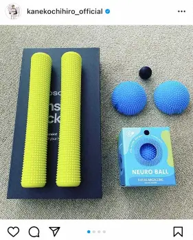 「ブラックボード」は足の各部の動きを円滑にするトレーニング器具。「ここ最近の足の使い方を考えると、うまく使えていなかった。前と後ろ、それぞれの動きがしっかりできるように」と狙いを明かした。「ニューロボール」は「とげとげで足の裏や手のひらに刺激を与えて神経の伝達を良くする」ことが目的。「例年の1月と肩の状態を比べると、いつもより投げられているかな」と語る。