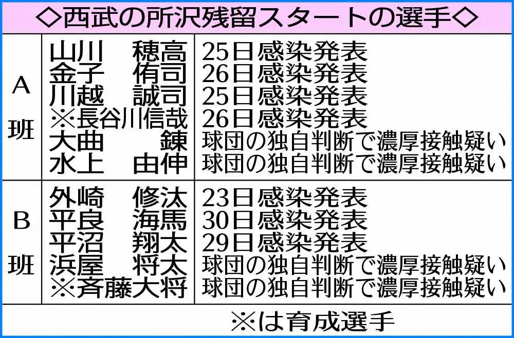 西武のA班がキャンプする南郷スタジアム Photo by スポニチ 西武 平良も新型コロナ感染…異例の11人不在キャンプイン ギャラリーで見る この記事のフォト 2022年01月31日の画像一覧 もっと見る 2022年01月31日の画像をもっと見る