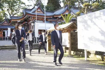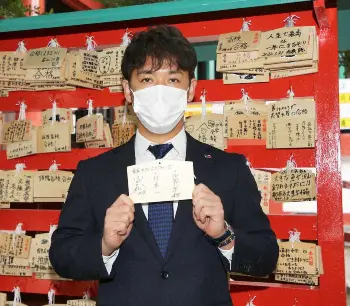 ヤクルト新選手会長・小川が波上宮参拝 絵馬に「世界平和」と「日本一」