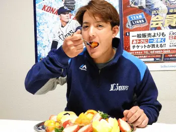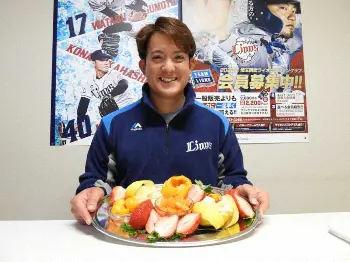 今季A班(1軍)スタートを切り、南郷キャンプで汗を流す。同地の宮崎県日南市からせとか、日向夏、完熟金柑たまたま、不知火、南いちご農園のいちごのフルーツ盛り合わせが、祝いの品として贈られ「こんな風にお祝いいただけると思っていなかったので、びっくりしましたし何より美味しかった。大きないちごにはびっくりしました」と喜んだ。