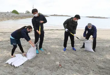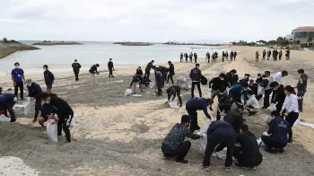 また、宿舎のシェラトン沖縄サンマリーナリゾートでは軽石の清掃も毎週行っているといい、この日は鈴木、桐敷をはじめ、ホテルスタッフ、球団スタッフ、報道陣など、約60人が清掃の手伝いに参加した。