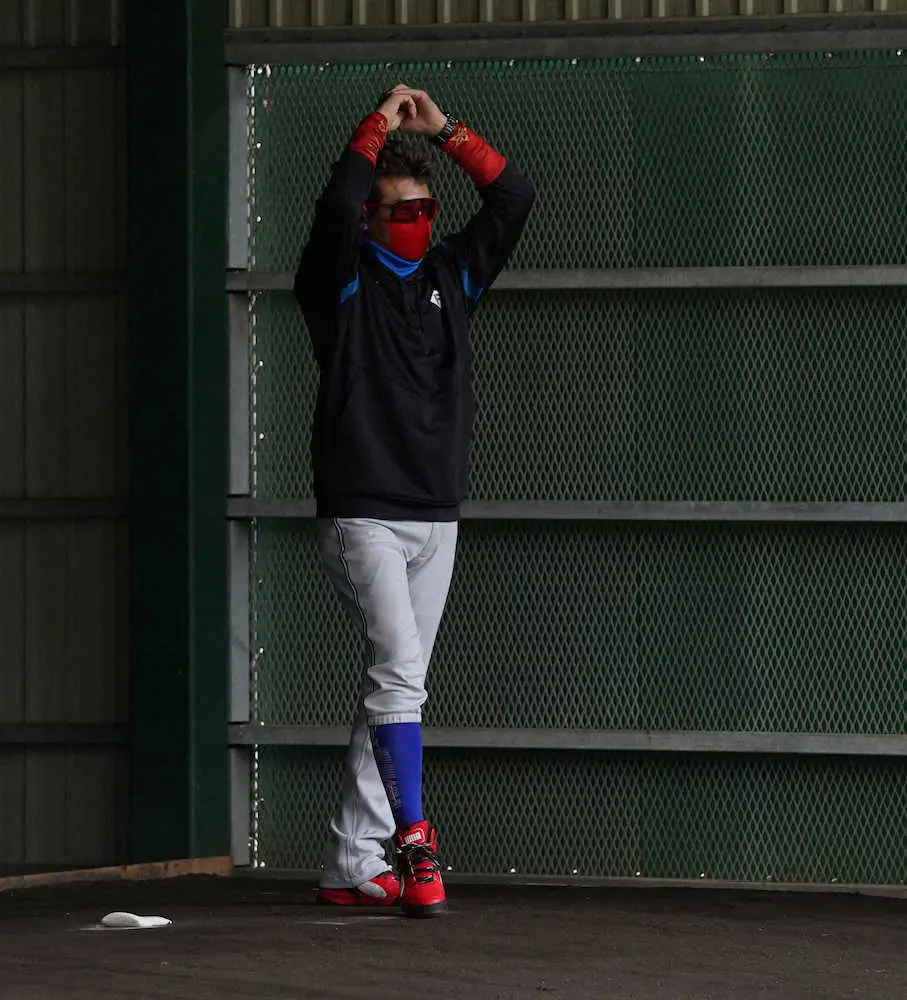 ◎常に静寂を保ち、取材陣の携帯電話はマナーモードが求められるブルペン投球に「でも試合は静かじゃないでしょ。しゃべり声のテープとか流しながら、集中力を保たせない投球練習も取り入れようかなと思ってます」。いつでも本番想定です。