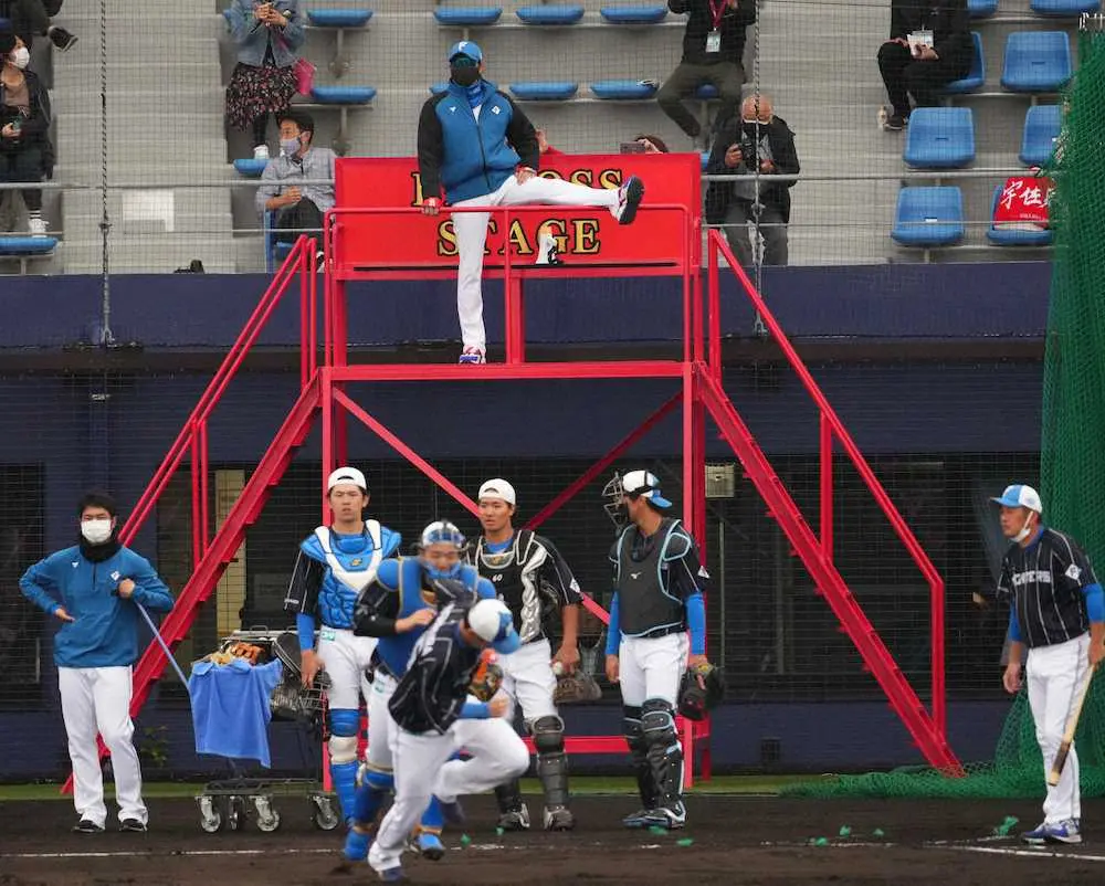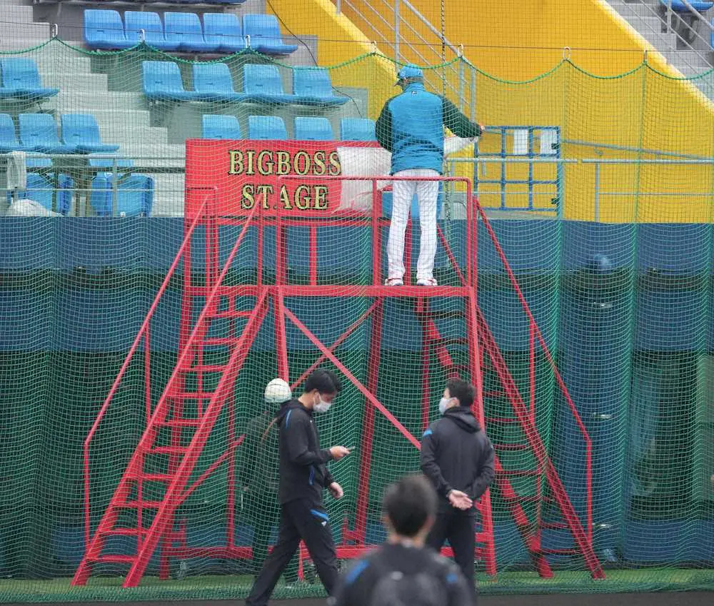 <日本ハムキャンプ>球場に到着し初めてBIG BOSS STAGEに登る新庄監督(撮影・沢田 明徳) Photo by スポニチ 日本ハム・新庄監督 ド派手真っ赤「ビッグボスタワー」登場 記念撮影す… ギャラリーで見る この記事のフォト 2022年02月12日の画像一覧 もっと見る 2022年02月12日の画像をもっと見る