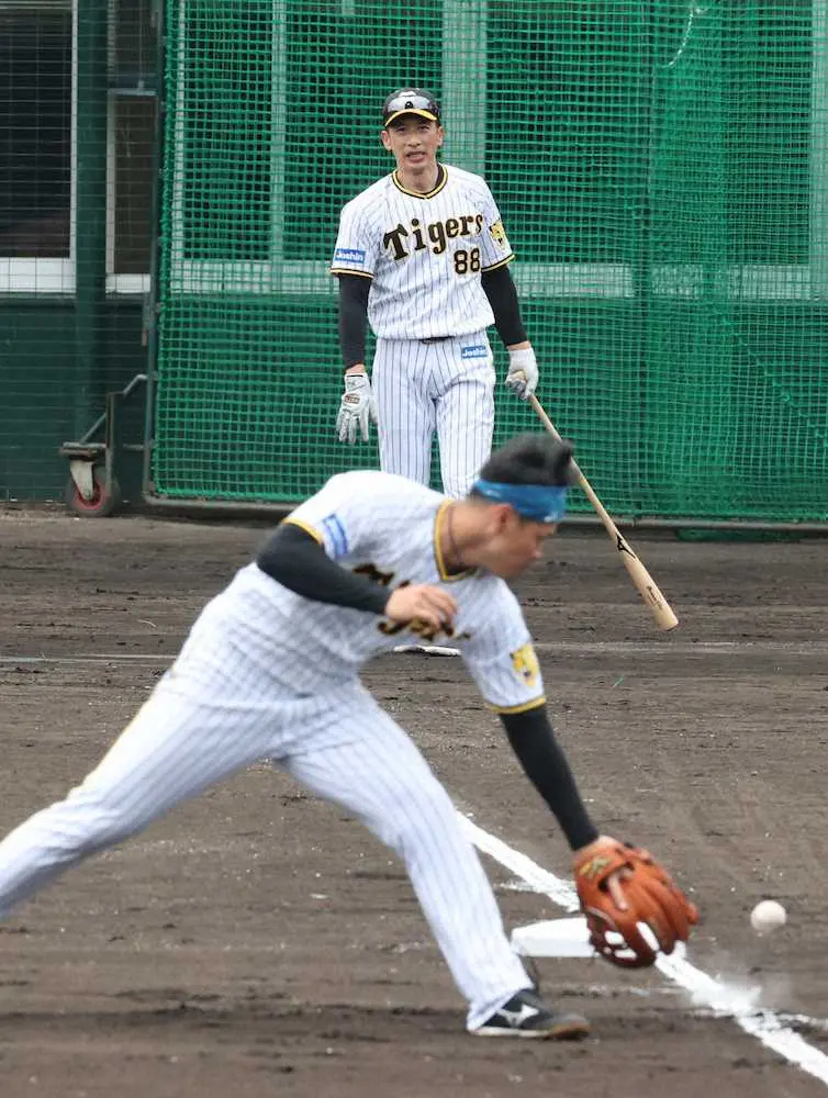 阪神 キャンプ名物デスノックもこれが見納め? 矢野監督が自ら大山、佐藤輝に地獄ノック