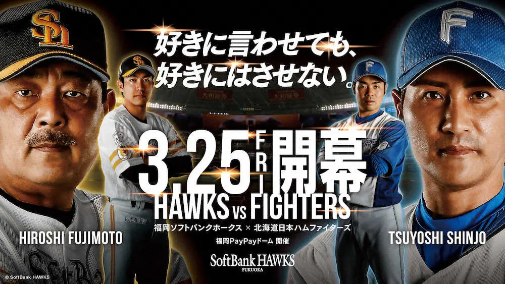 ソフトバンク開幕戦キービジュアル(C)SoftBank HAWKS Photo by 提供写真 ソフトバンク、開幕戦キービジュアル完成 藤本監督、新庄ビッグボスへ「… ギャラリーで見る この記事のフォト 2022年02月14日の画像一覧 もっと見る 2022年02月14日の画像をもっと見る