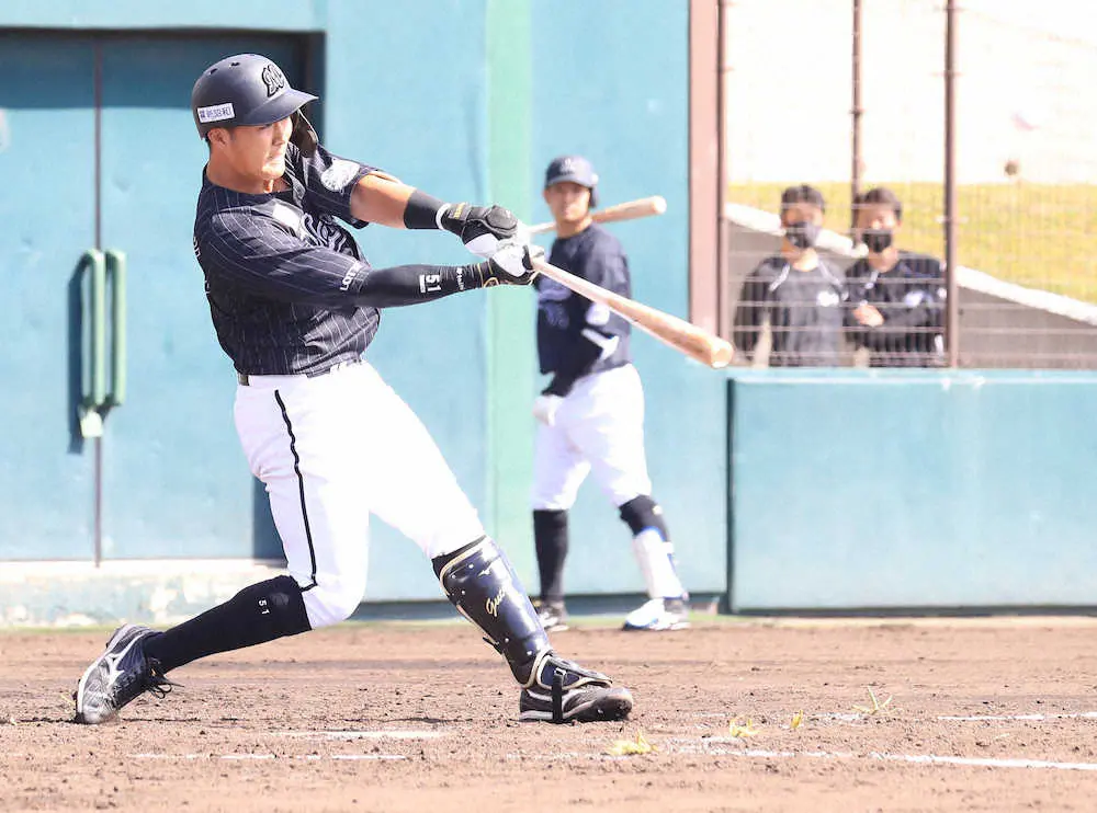 広島ドラ6・末包、主力の森下から中越え一発!長打力を見せつけ「1本だけでなく何本も打てるように」