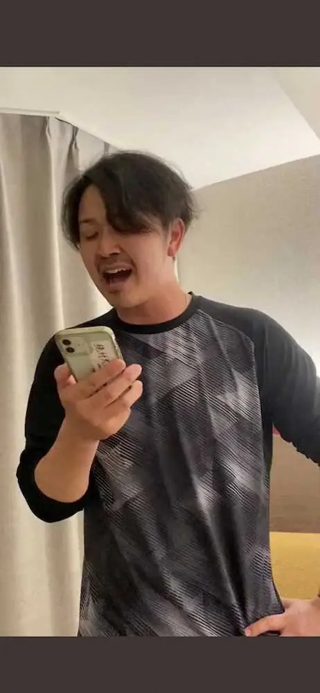 29歳のサイド右腕が歌い上げたのはサザンオールスターズの「いとしのエリー」。同様に歌った塩見や大西が「うまい」と認めた、情感あふれる声の持ち主だ。「昔の曲が好き。よく聴くのは浜田省吾さん」といい、自身の十八番は河村隆一の「Love is...」やアリスの「チャンピオン」と懐メロが並ぶ。