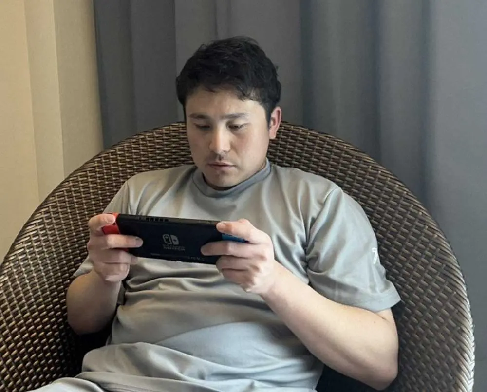 【マリオカート】DeNA主将の佐野は、「マリオカート8デラックス(ニンテンドースイッチ)」の通信対戦で、宿舎内のリラックスタイムを有意義に過ごしてきた。