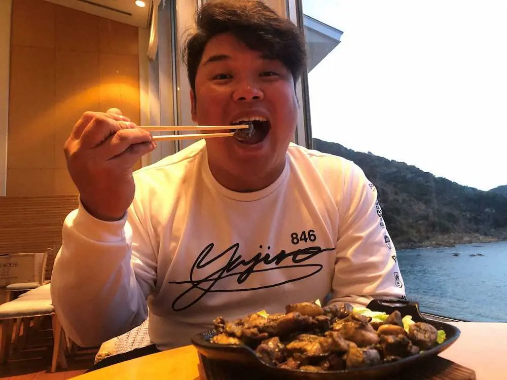 20年ドラフト1位の体重112キロ・渡部は、A班(1軍)キャンプ初参加で「とてもおいしかった。歯ごたえがしっかりしていて、食べ応えがあります。第3クールを終えて疲れが出てきているので、今日はみやざき地頭鶏のムネ肉をたくさん食べたい」と喜んだ。