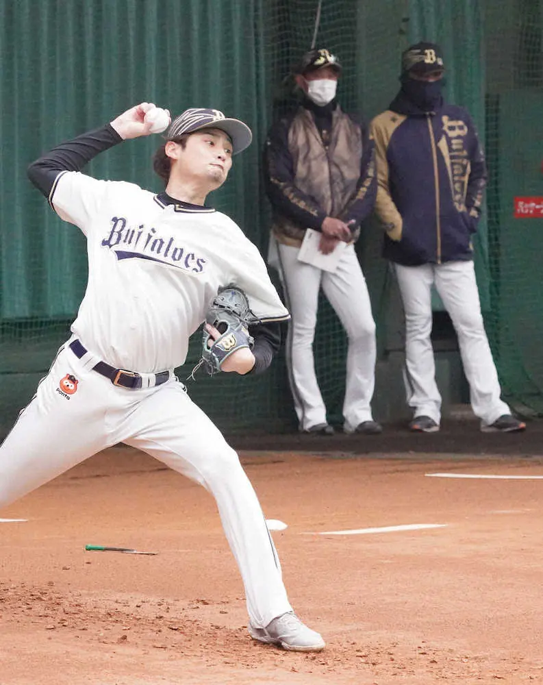 元日本ハムの中村がテスト生としてオリックス・春季キャンプに練習参加し、ブルペンでツーシームなど48球を投じた。