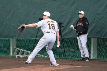 巨人・亀井コーチ発案 二塁走者つけて外野陣送球練習