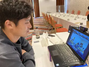 <阪神キャンプ>オンライン講演会で坂本と交流する養父中の生徒(養父中提供)