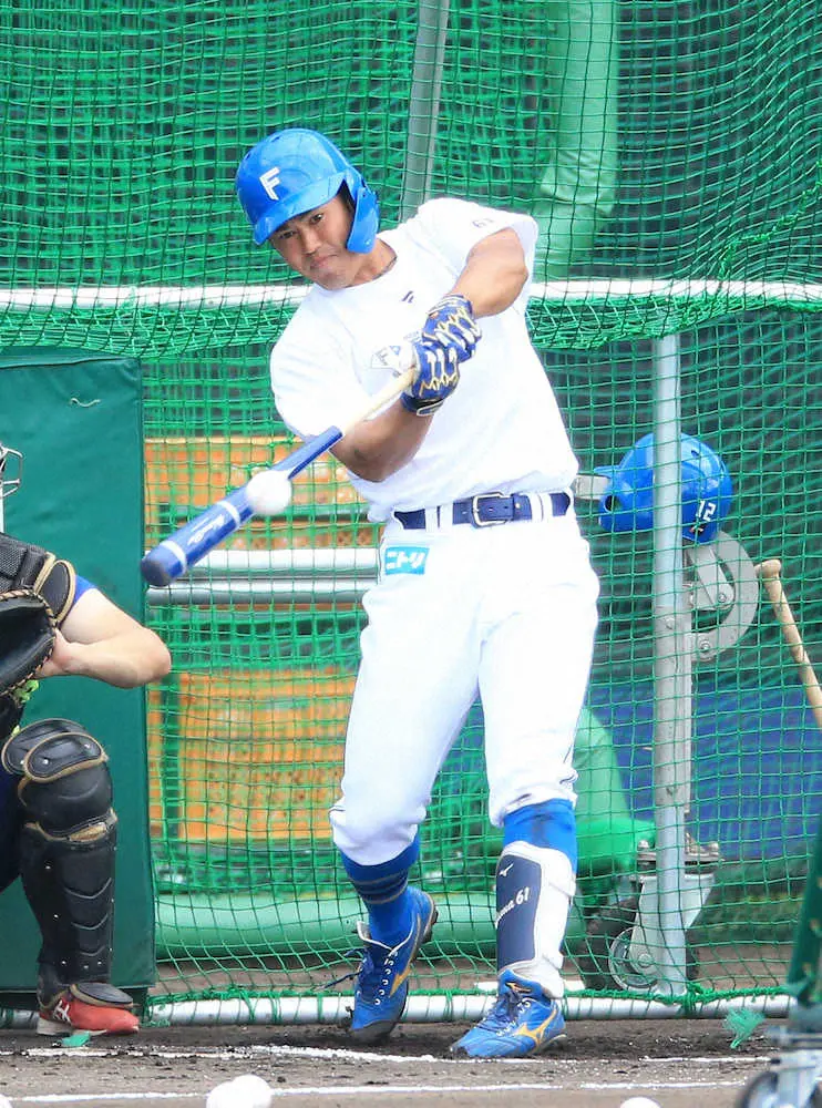 <日本ハム キャンプ>フリー打撃を行う今川 (撮影・西川祐介)