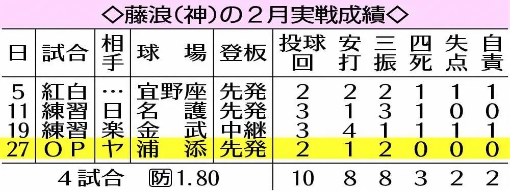 阪神の開幕ローテ予想 Photo by スポニチ 阪神・藤浪 開幕ローテ“ほぼ当確” 緩急自在の2回零封 矢野監督大絶賛「… ギャラリーで見る この記事のフォト 2022年02月28日の画像一覧 もっと見る 2022年02月28日の画像をもっと見る
