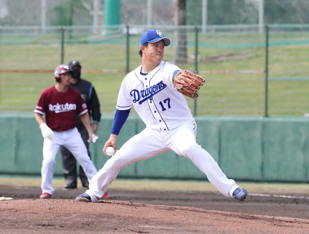 実戦初登板の中日・柳は先発で2回を3安打1失点だった。初回は四球と右前打で無死一、二塁としたが、後続を断ちピンチ脱出。2回は1死三塁から小郷に右前適時打を許したが、続く田中和を外角直球できっちり投ゴロ併殺に打ち取った。変化球の精度に課題を残しつつも最速142キロの直球はキレがあった。