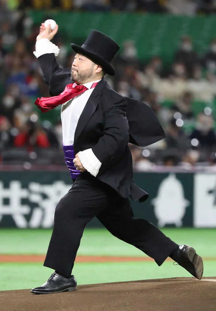 ヒゲ枠として貴族と執事が、試合前に好投した。ペイペイドームで6日に行われたソフトバンク―ロッテ戦の始球式役を、お笑いコンビの「髭男爵」のツッコミ担当の山田ルイ53世が務めた。