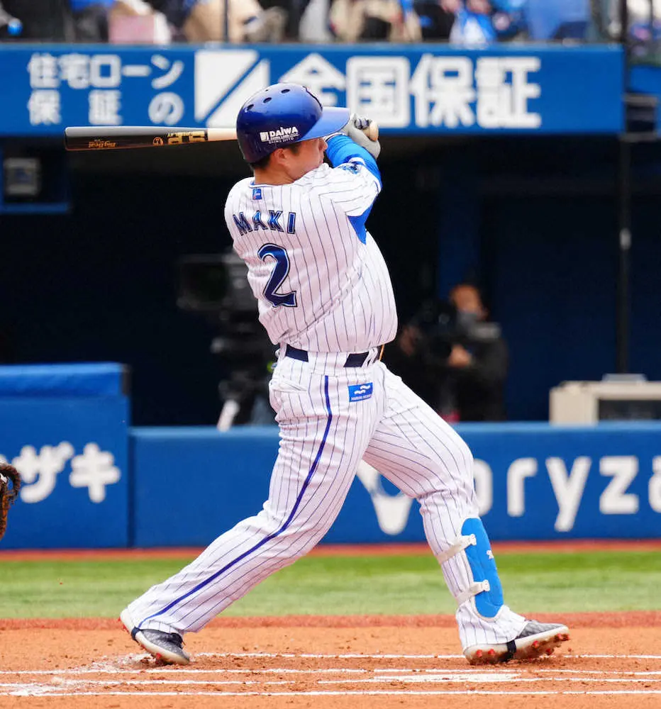 DeNAは8日、西武とのオープン戦(横浜)に臨み、初回1死一、二塁で、現在オープン戦首位打者の4番・牧秀悟内野手が、左翼線に先制二塁打を放った。