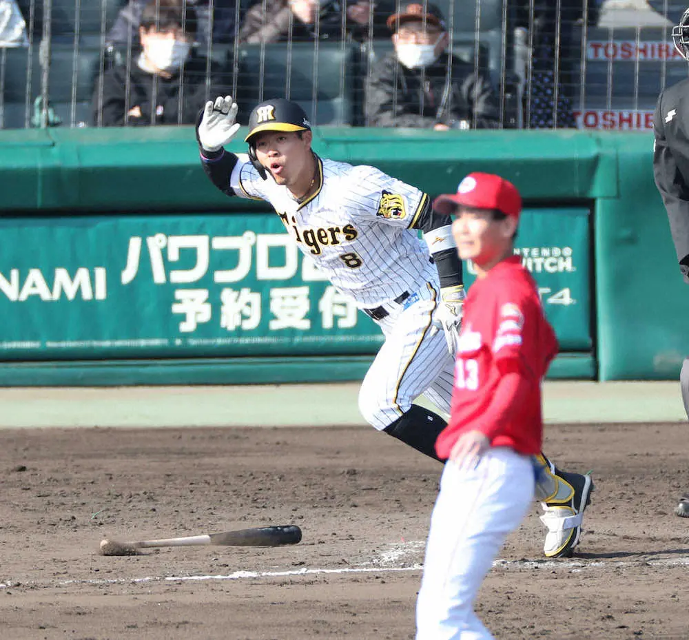 好調続く「4番」阪神・佐藤輝 6回に1イニング2安打の固め打ち OP戦初の猛打賞に拍手喝采