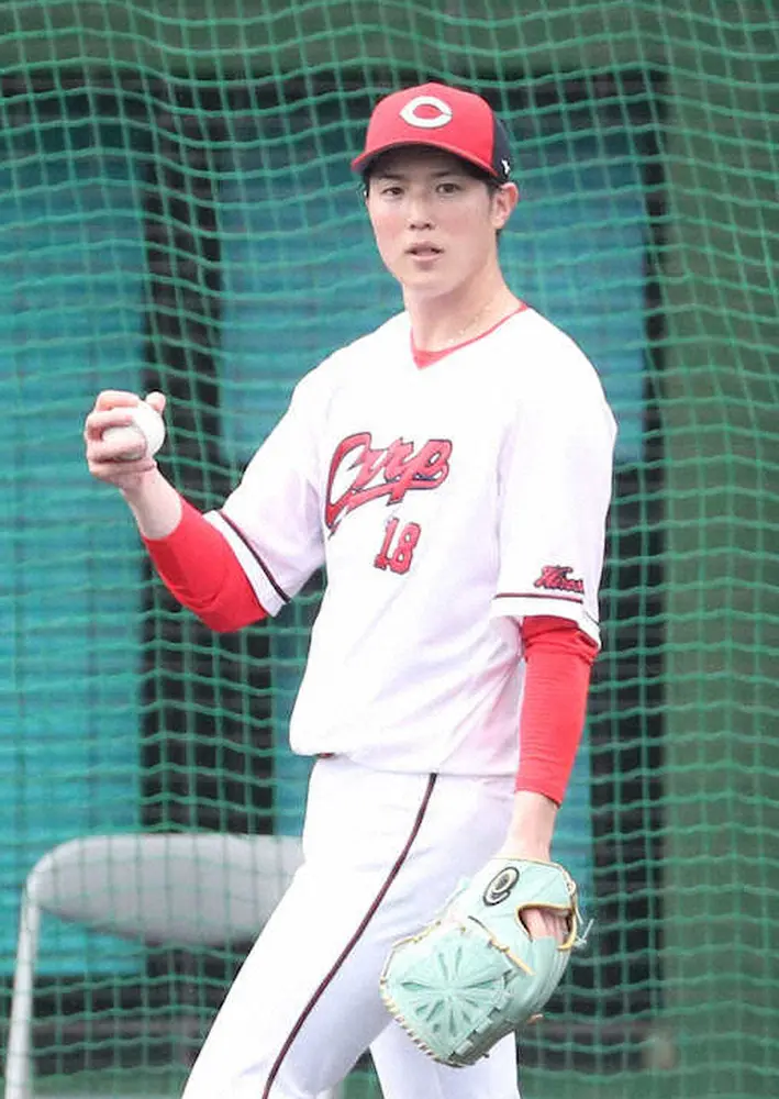▽3月6日 マツダで実戦を想定したフリー打撃に登板。打者6人に21球を投げて奪三振2、被安打1も「まだ全然」。