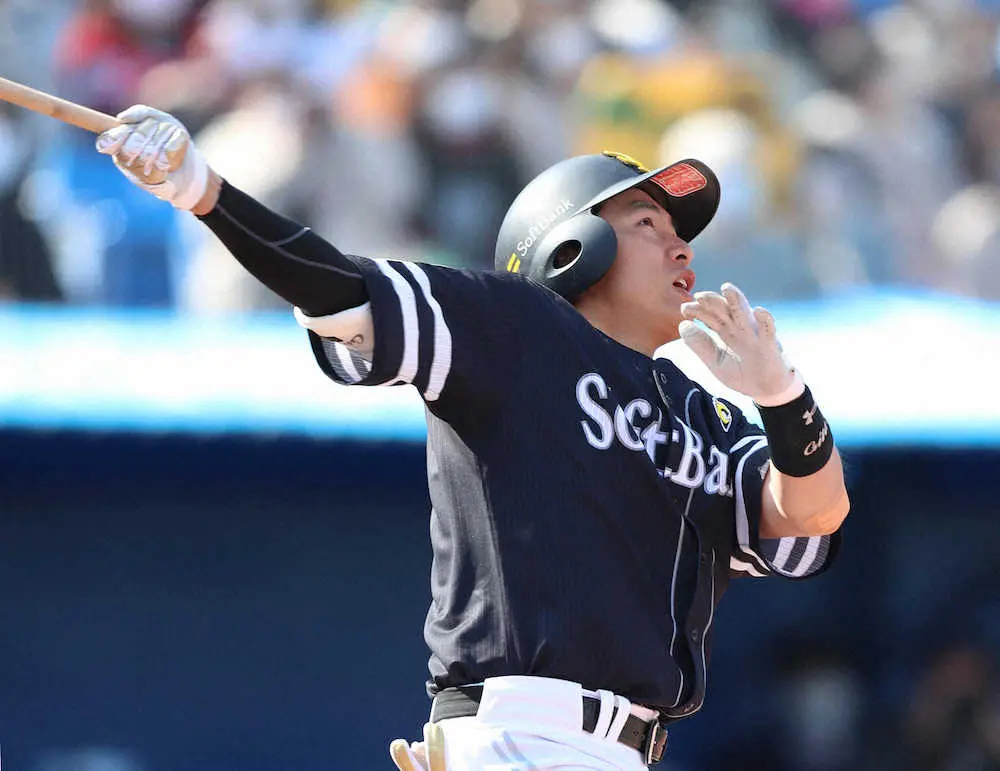 ソフトバンク柳田主将 右手一本で今季初アーチ「スタンドまでいくとは…」