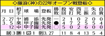 阪神・藤浪の22年オープン戦登板 Photo by スポニチ 開幕2戦目決定的な阪神・藤浪 変化球自在に新境地 5回ノーヒットに「修… ギャラリーで見る この記事のフォト 2022年03月13日の画像一覧 もっと見る 2022年03月13日の画像をもっと見る