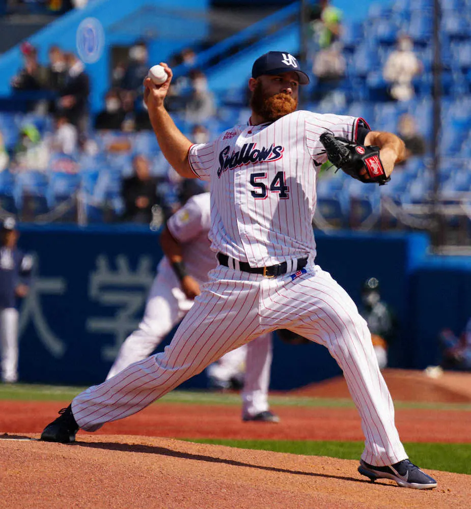 ヤクルトのサイスニード投手(29)が今季初先発。27球を投じ、最速は146キロ。2回2安打無失点と順調な調整を伺わせた。