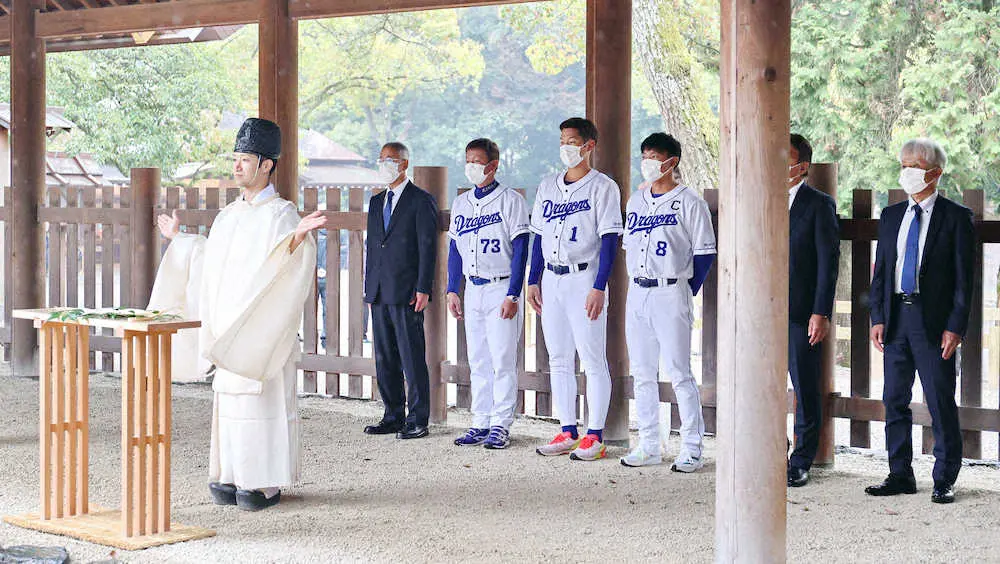 中日の立浪和義監督と京田陽太選手会長、大島洋平野手キャプテンらが18日、名古屋市の熱田神宮を参拝し、必勝祈願を行った。