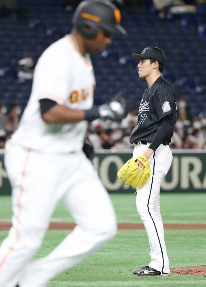 だが、5回2死一、二塁で迎えた3打席目に13球粘った末に最後は四球を選び満塁としたところで代走・松原を送られた。来日初安打はお預けとなったものの、次打者の岡本和が満塁本塁打を放ち、価値ある四球となった。