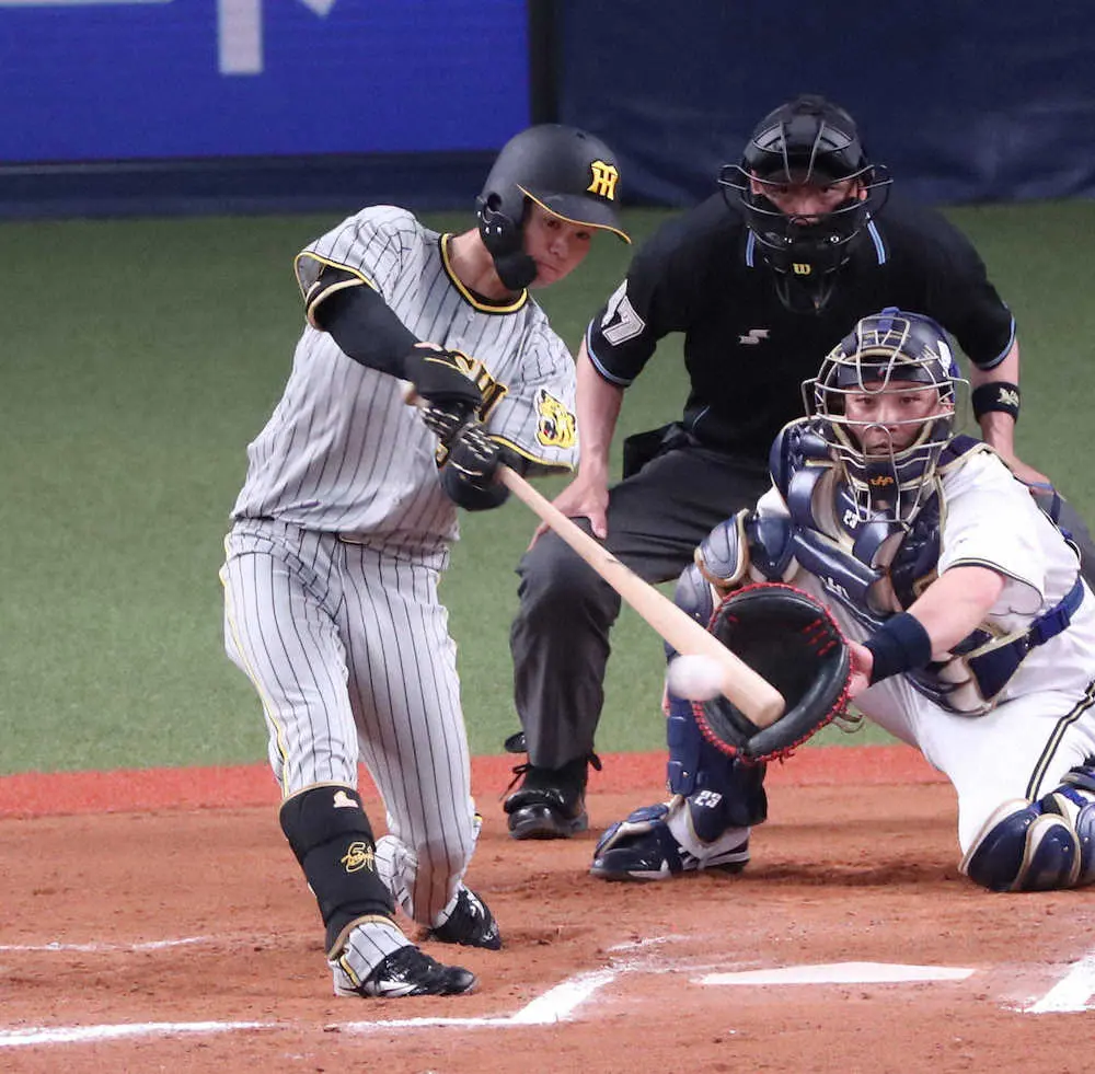 阪神・中野が下肢のコンディション不良から「9番・遊撃」で1軍復帰。同点の7回に勝ち越しの適時三塁打を放ち、万全をアピールした。
