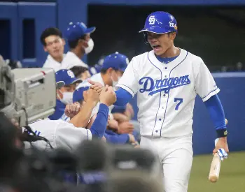 打線は楽天先発の則本の前に5回まで無得点。3、4、5回と3イニング連続3者凡退に倒れるなど元気がなかったが6回、先頭の代打・根尾が二塁への内野安打で出塁すると、続く大島の右前打で三塁へと進塁。岡林の二ゴロ併殺打の間に生還し、先制のホームを踏んだ。