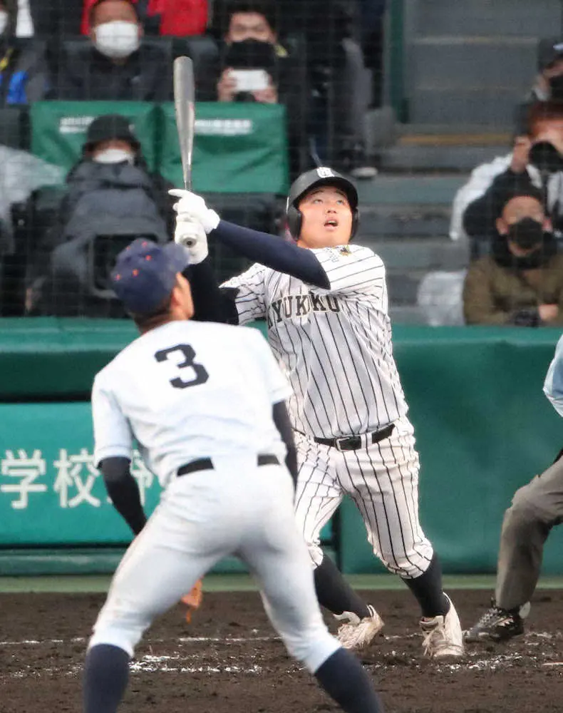 それでも昨秋の県大会途中から4番を打つスラッガーへのベンチの信頼は変わらなかった。これまで引っ張る打球が多かったが、冬場には左方向への打撃も意識。「流しもしないと得点につながらない」。延長10回は1死一塁から3番・小田原義(3年)がエンドランを決めて一、三塁とチャンス拡大。逆方向への一打で期待に応えた佐倉は「頼りない4打席が続いていたけれど、信じてつないでくれた選手と監督に感謝したい」とほっとした様子だった。