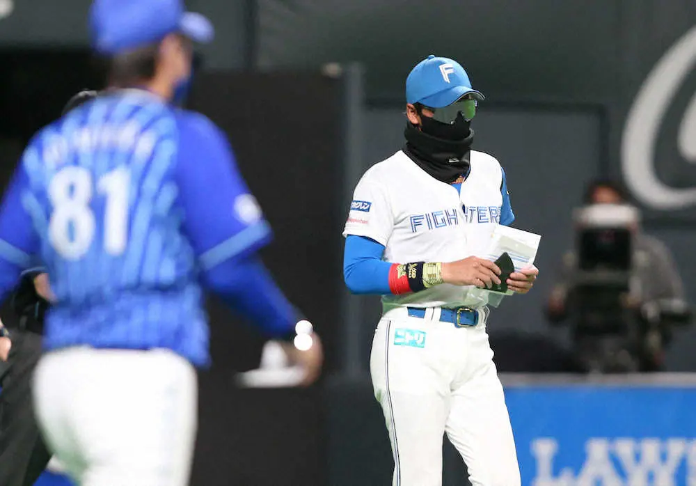 ◎試合前のメンバー表交換時に、日本ハム・新庄監督から名刺入れほどの大きさの黒色の小物を手渡されたDeNA・三浦監督。報道陣に聞かれると「黒いメンバー表です」。もしかしてプレゼントでは?