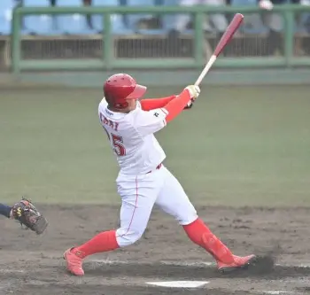 公式戦デビューとなった入社1年目の今井脩斗内野手(早大)も快音を響かせた。1点差に迫られた3回2死一、二塁。2ボールからの甘い変化球を、左翼席へと突き刺した。「2アウトからつないでもらったチャンスだったので、何としても1点取れるようにと思いました」。昨季、4番を務めた中村健人は広島入り。持ち前の長打力はチーム随一で、空位となっている主軸の座を任されても不思議ではない。