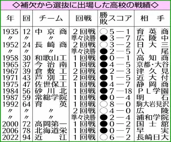 ≪補欠校30年ぶり初戦突破≫京都国際の辞退により出場が決まった近江が初戦を突破。補欠校の出場は13回目で、初戦を突破したのは第64回大会の育英以来30年ぶり4校目。