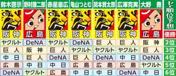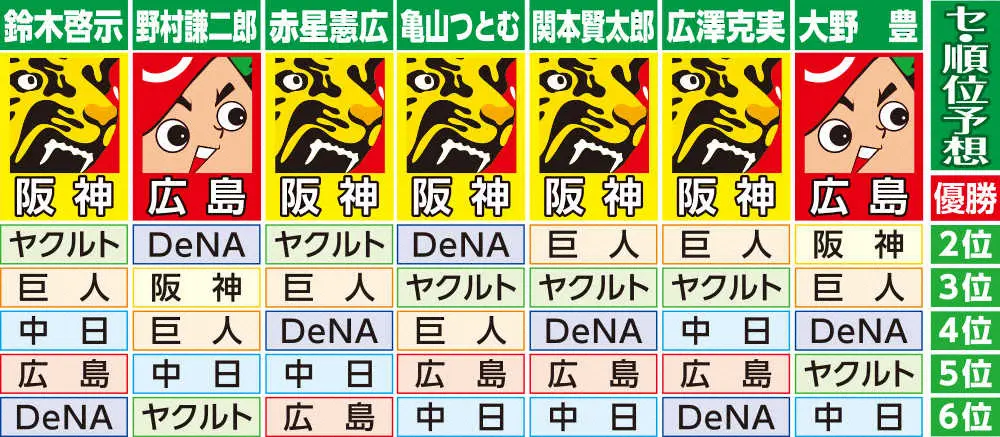 亀山つとむ 阪神を優勝予想する方が多いですね。