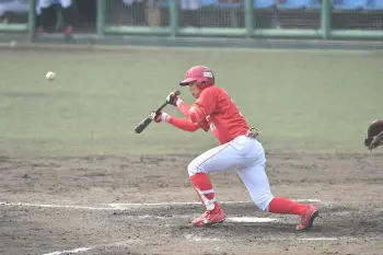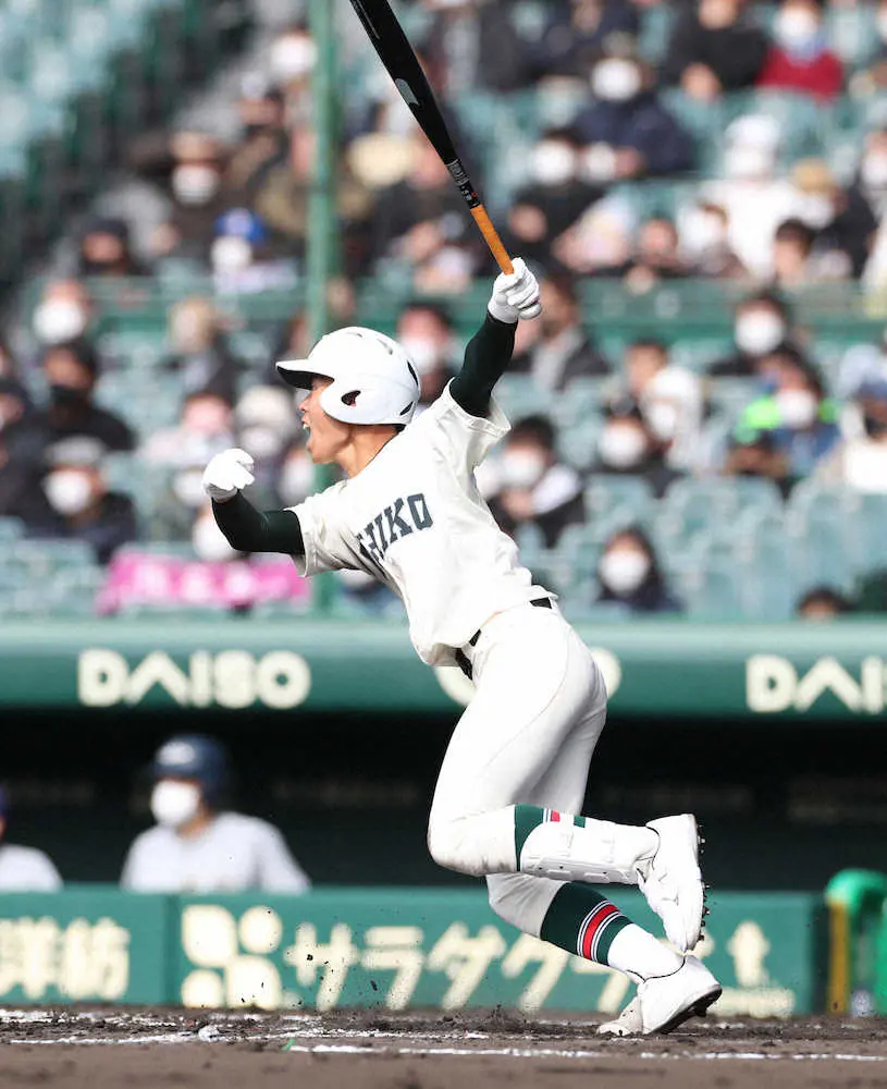 <市和歌山・花巻東>3回1死一、二塁から右前適時打を放つ市和歌山・寺田(撮影・成瀬 徹)