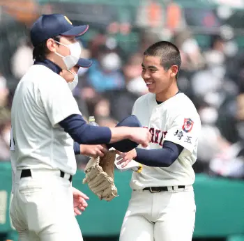 <浦和学院・和歌山東>6回表終了後、ベンチに戻り、笑顔を見せる浦和学院・宮城(撮影・坂田 高浩) Photo by スポニチ 浦和学院が8強一番乗り! “浦学のコナン”宮城が圧巻10Kで7回零封 ギャラリーで見る この記事のフォト 2022年03月24日の画像一覧 もっと見る 2022年03月24日の画像をもっと見る