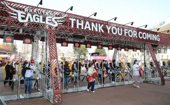 プロ野球が25日、セ・パ両リーグで開幕し、6試合が行われる。トップを切って16時にプレーボールした楽天─ロッテ戦では、開幕を祝う花の中で、人気お笑いコンビ「サンドウィッチマン」からの「祝!日本一!!」の立札もあった。